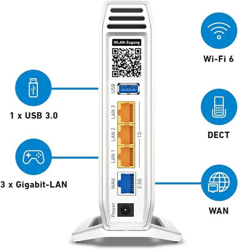 • 1x 2,5 Gigabit WAN/LAN, 3x Gigabit LAN, USB 3.0 für Drucker und Speicher (NAS)
