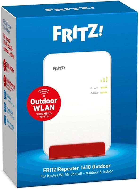 Der FRITZ!Repeater 1610 Outdoor ist mit seinem robusten Gehäuse (IP54) speziell für den Außeneinsatz konzipiert. Hier sorgt er mit Wi-Fi 6 (2 x 2 MIMO) und Datenraten von bis zu 3.000 MBit/s für schnelle, stabile Verbindungen - im Garten, auf der Terrasse oder dem Balkon. Mit Power over Ethernet (PoE+) ist der Repeater zudem ideal für Innenbereiche geeignet und erweitert das WLAN flexibel dort, wo keine Steckdose vorhanden ist. Mit Gigabit-LAN, Mesh-Komfort sowie regelmäßigen Updates und dem bewährten FRITZ!OS ist der FRITZ!Repeater 1610 Outdoor eine smarte Erweiterung für anspruchsvolle WLAN-Umgebungen - sowohl draußen als auch drinnen.