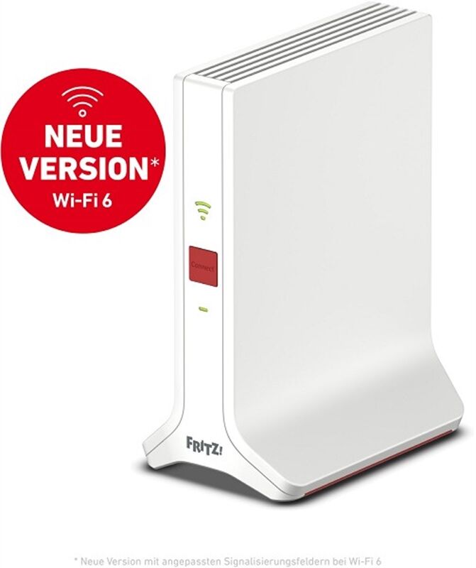 Der FRITZ!Repeater 3000 AX erweitert mit schnellem Wi-Fi 6 und intelligenter Mesh-Technologie das WLAN im Heimnetz. Drei Funkeinheiten mit insgesamt acht Antennen, die in Summe eine Datenrate von bis zu 4.200 MBit/s erzielen können, ermöglichen große Reichweiten und hohen Datendurchsatz im WLAN. Damit sorgt dieser Triband-Repeater für eine stabile Funkabdeckung bis in den letzten Winkel, selbst in größeren Wohnungen oder Büros mit vielen Räumen. Ausgestattet mit zwei Gigabit-LAN-Anschlüssen sichert der Repeater auch per Kabelanbindung die schnelle Datenverteilung im Heimnetz. Der FRITZ!Repeater 3000 AX fügt sich mit seinem modernen Design und klarer Formsprache in das bestehende FRITZ!-Portfolio Wi-Fi 6 ein.