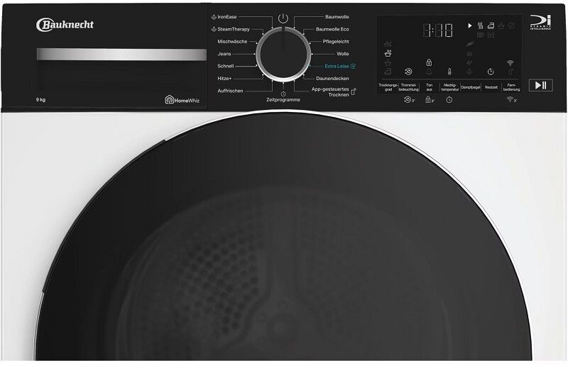 • Optionen: Start/Pause, Kurz-Option, Schonen, Trommelinnenbeleuchtung, Tonsignal am Programmende, Stumm, additional reversing