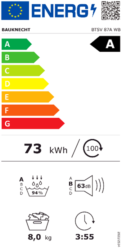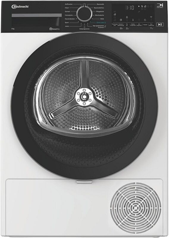 Leistungseigenschaften - Angabe gemäß EU-Verordnung 2023/2534 - Apps ladbar - steuerbar über Smartphone/Tablet - Anschlusswert (kW): 0.6 - Fassungsvermögen Trockenwäsche (kg): 8 - Energieeffizienzklasse: Energieeffizienzklasse A - Energieeffizienzspektrum: Spektrum [A bis G] - gew. Energieverbrauch/100 Zyklen in kWh: 73 - gemessen bei Programm: gemessen bei Eco Programm - Programmdauer Eco (Min): 235 - Kondensationseffizienzklasse : Kondensationseffizienzklasse A - gewichtete Kondensationseffizienz: * %: 94 - Luftschallemissionsklasse: Luftschallemissionsklasse B - Betriebsgeräusch (dBA): 63 - Elektronische Steuerung - Absicherung: 10 A Absicherung - 220-240V 50/60Hz Netzanschluss Automatik-Funktionen - Wärmepumpe - elektr. Feuchtigkeitsmessung Bedienung - Programmwahl: Ein-Knopf-Programmwahl - Start-/Pause-Taste - Schon-Taste für niedrigere Temperaturen - Kurz-/Zeitspar-Taste - Start-Vorwahl - max. vorprogrammierbare Startzeit (Std.): 24 - Restzeitanzeige: Restzeitanzeige - Wärmetauscher-Kontrollanzeige - Flusensieb-Kontrolle: opt. Signal zur Flusensiebreinigung - Kondenswasser-Behälterkontrolle: opt. Wasserentleerungs-Signal - Programmanzeige: Programm-Ablaufanzeige - Programmende-Signal: akustisches Programmende-Signal - Kindersicherung Programme - Anzahl Trocken-Programme: 15 - Baumwolle-Programm - Pflegeleicht-Programm - Fein-Programm - Dessous-Programm - Woll-Programm - Lüften-Programm - Große Wäschestücke-Programm - Jeans-Programm - Mischwäsche-Programm - Outdoor-/ Sport-Programm - Nacht-Programm - Schnelltrocknungs-Programm - Energiespar-Programm - Zeitwahl-Programme - Feinabstufungen innerhalb der Programme Trommel-/Trocken-Eigenschaften - Trommel-Material: Edelstahl-Trommel - Trommel-Innenbeleuchtung - Trommel mit Links-/Rechtsdrehung Gehäuse-Eigenschaften - Breite (cm): 59.8 - Höhe (cm): 84.6 - Höhenverstellung - Tiefe (cm): 67.4 - Tiefe bei geöffneter Tür (cm): 104 - Leergewicht (kg): 48.5 - Bullauge - Anschlagseite der Tür: Rechts-Anschlag der Tür - Tür-Anschlag wechselbar - höhenverstellbare Gerätefüße - Kondenswasser-Behälter in der Blende - Länge der Anschlussleitung (cm): 150 Verpackungsangaben - Breite mit Verpackung (cm): 65 - Höhe mit Verpackung (cm): 88.5 - Tiefe mit Verpackung (cm): 69 - Gewicht mit Verpackung (kg): 49.5 Farben - Gehäuse-Farben: weiß