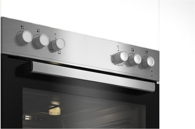 Elektrischer Anschluß - Angaben nach 2010/30/EU - Energieeffizienzklasse: Energieeffizienzklasse A - Energieeffizienzspektrum: Spektrum [A+++ bis D] - Anschlusswert (kW): 8.9 - Netzanschluß: 220-240V 50/60Hz Netzanschluss - Gerätekombination: Kombination Einbauherd+Glaskeramikfeld Leistungseigensch. Backofen (allgemein) - Backrohrvolumen: Backrohrvolumen: Large - Energieverbr. b. Ober-+Unterhitze (kWh): 0.82 - Energieverbr. b. Heißluft/Umluft (kWh): 0 Bedienung - Drehregler für Kochzonen - Drehregler für Backofen-Funktionswahl - Backofen-Temperaturwahl: Drehregler für Backofen-Temperatur - Betriebskontrollanzeige Backofen-Funktionen - Anzahl der Betriebsarten: 4 - Ober-/Unterhitze - Unterhitze - Grill Backofen-Ausstattung - Selbstreinigung: Hydrolyse - Anzahl der Innenräume: 1 - Innenraum-Volumen (l): 74 Zubehör - Anzahl der Grillroste: 1 - Fettpfanne Gehäuse-Eigenschaften - Breite (cm): 59.4 - Höhe (cm): 59.5 - Tiefe (cm): 56.7 - Gesamt-Gewicht (kg): 36.5 - Anzahl Backofen-Türscheiben: 2 - Backofentür-Gestaltung: Backofentür mit Sichtfenster - Backofentür-Innenfläche ganz aus Glas - herausnehmbare Tür-Innenscheibe - Anschlagseite der Tür: Unten-Anschlag der Tür - Nischen-Breite (cm): 56 - Nischen-Höhe (cm): 60 - Nischen-Tiefe (cm): 55 Ausstattung Glaskeramikfeld - Anzahl der Kochzonen: 4 - Restwärmeanzeige: Restwärmeanzeige Kochzone-vorne/außen links - Durchmesser der Kochzone (cm): 18 - Heizleistung (W): 1700 Kochzone-hinten/innen links - Durchmesser der Kochzone (cm): 18 - Heizleistung (W): 2000 Kochzone-hinten/innen rechts - Durchmesser der Kochzone (cm): 18 - Heizleistung (W): 1700 Kochzone-vorne/außen rechts - Durchmesser der Kochzone (cm): 14 - Heizleistung (W): 1200 Einbau-Eigenschaften - Breite, Kochfeld (cm): 58 - Tiefe, Kochfeld (cm): 51 - Höhe, Kochfeld (cm): 3.5 - Breite, Ausschnitt (cm): 56 - Tiefe, Ausschnitt (cm): 49 Verpackungsangaben - Breite mit Verpackung (cm): 66 - Höhe mit Verpackung (cm): 79 - Tiefe mit Verpackung (cm): 66 - Gewicht mit Verpackung (kg): 40 Farben - Gehäuse-Farben: edelstahl