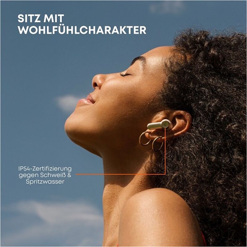 Das geringe Gewicht von 4,15 Gramm pro Hörer (ohne Ohrpassstück) und eine Auswahl aus fünf Silikon-Ohrpassstücken in den Größen XS bis XL sorgen für einen angenehmen Komfort und festen Sitz zugleich – selbst bei den wildesten Tanzeinlagen. Besonders praktisch: Beim Herausnehmen der Kopfhörer pausiert die Musik und startet beim erneuten Einsetzen automatisch.