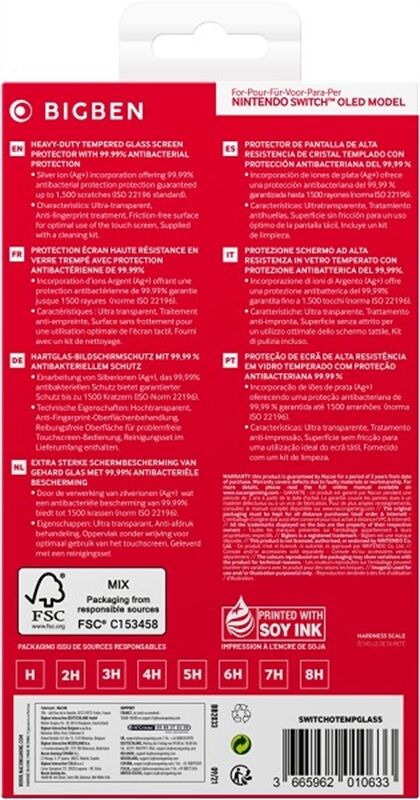 Artikeldetails für bigben Tempered Glass Screen Protector - Switch OLED (Schwarz)