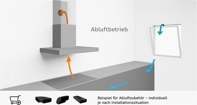 • Abluftstutzen Ø 150 mm (Ø 120 mm beiliegend)
