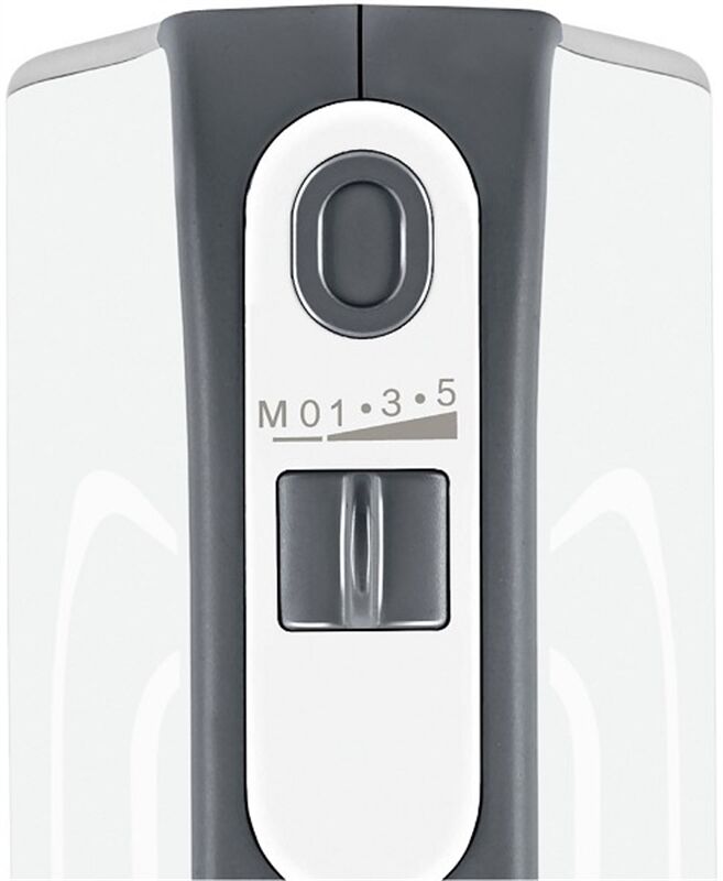 Leistungseigenschaften - Leistung (W): 575 - 230 V Netzanschluss Bedienung - Anzahl der Geschwindigkeitsstufen: 5 - Kurzzeit-/Momentschaltung - Auswerf-Taste - Kabelaufbewahrung: Kabelaufwicklung - Kabelclip - Sonderzubehör-Anschluss Ausstattung - Rührbesen - Knethaken - Rührbesen-Material: Edelstahl-Rührbesen Gehäuse-Eigenschaften - Breite (cm): 20 - Höhe (cm): 14.2 - Tiefe (cm): 7.5 - Gewicht (kg): 1.1 - Länge der Anschlussleitung (m): 1.4 - Griff: offener Griff Farben - Gehäuse-Farben: weiß