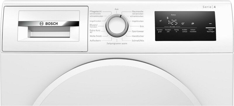 • Spezialprogramme: Wolle finish, Schnell/Mix, Handtücher, Zeitprogramm warm, Auflockern, Sportswear, Extra Kurz 40', Blusen/Hemden
