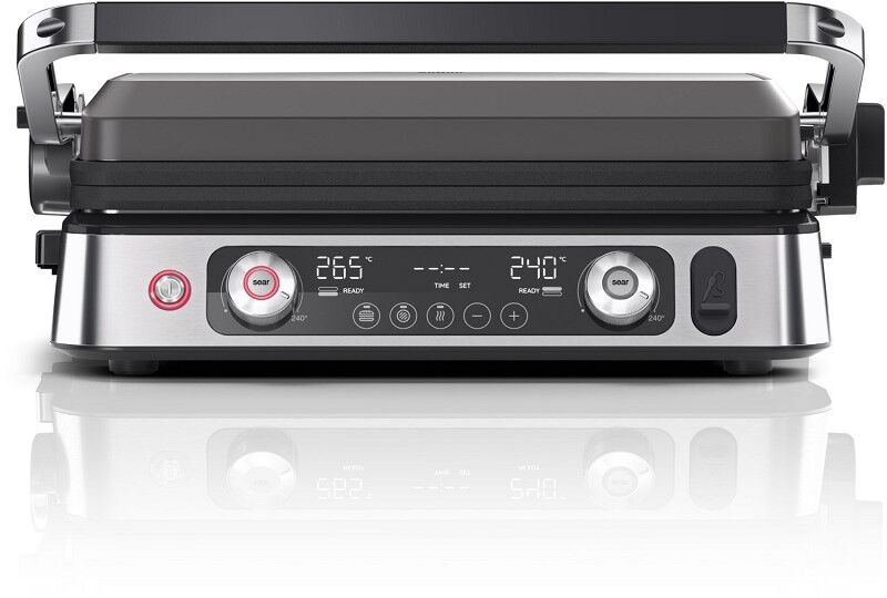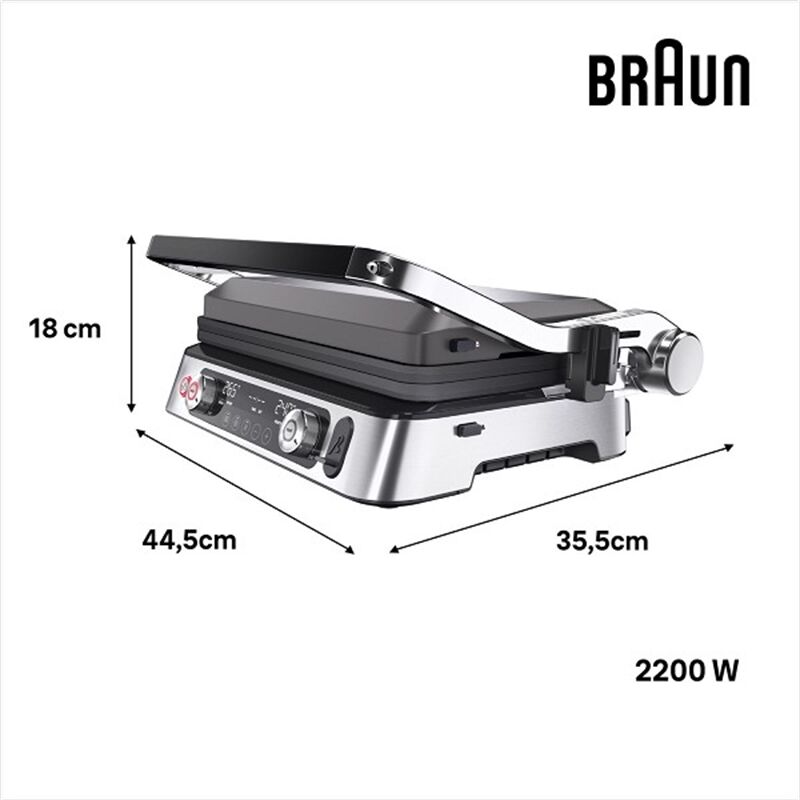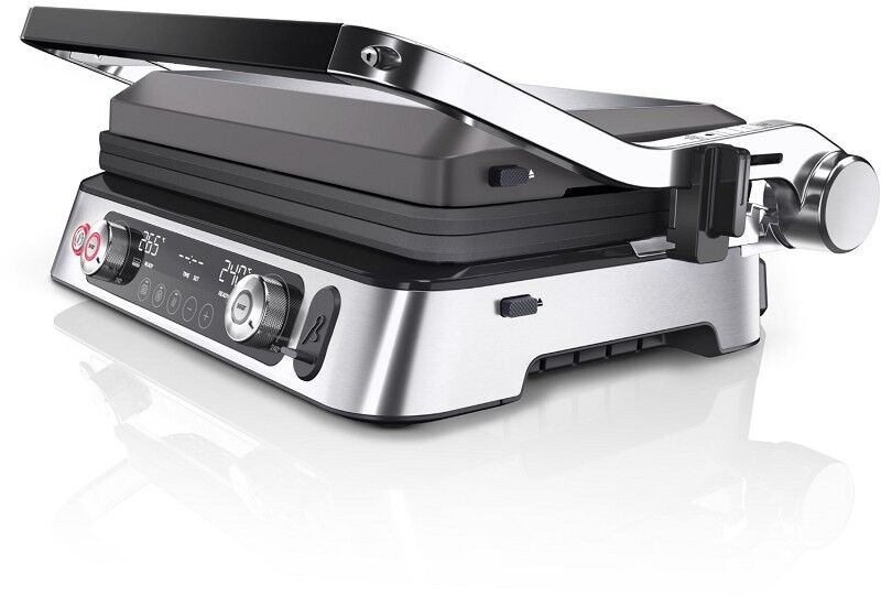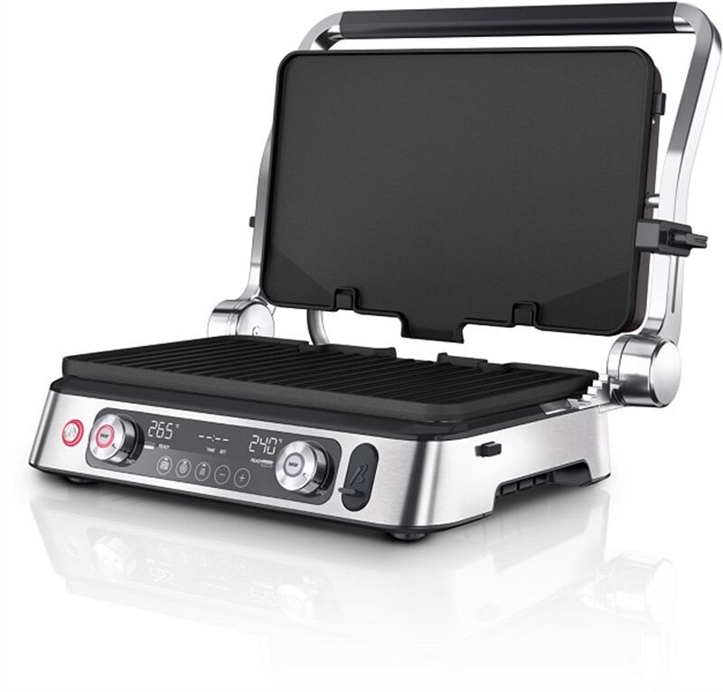 Leistungseigenschaften - Leistung (W): 2200 - max. Temperatur (°C): 240 - ein-/doppelseitiges Grillen: ein-/doppelseitiges Grillen - 2 unabhänige Heizelemente - Warmhalte-Funktion Bedienung - Temperaturanzeige - Thermostat: regelbarer Thermostat - Digital-Anzeige - Ein-/Aus-Schalter - Kontrollleuchte Ausstattung - Grillplatte: Grillplatte - Waffel-Einsatz - herausnehmbare Grillplatten - Anzahl der Platten-Sets: 3 - Speisen-Thermometer - Griff-Verriegelungssystem - Saftauffangschale - Messlöffel Gehäuse-Eigenschaften - Breite des Geräts (cm): 35.5 - Länge des Geräts (cm): 44.5 - Höhe des Geräts (cm): 18 - Gewicht (kg): 12 - Zubehör spülmaschinengeeignet