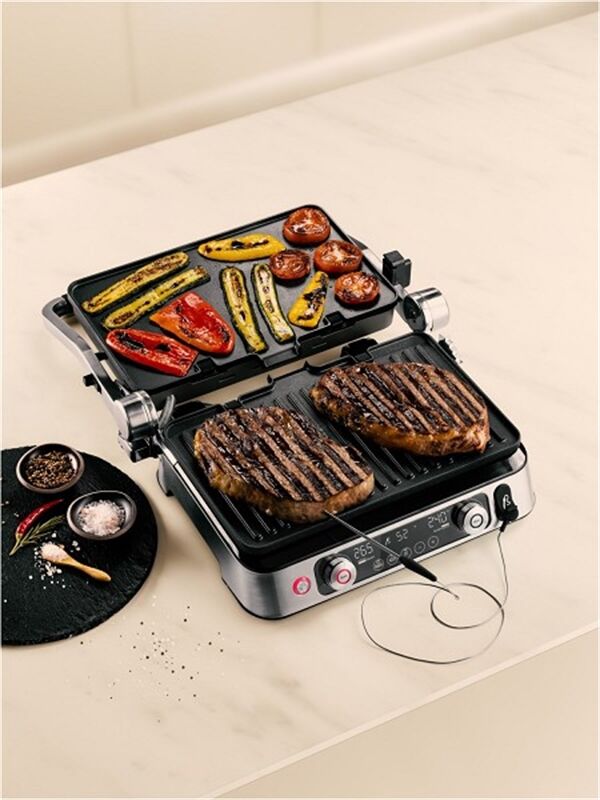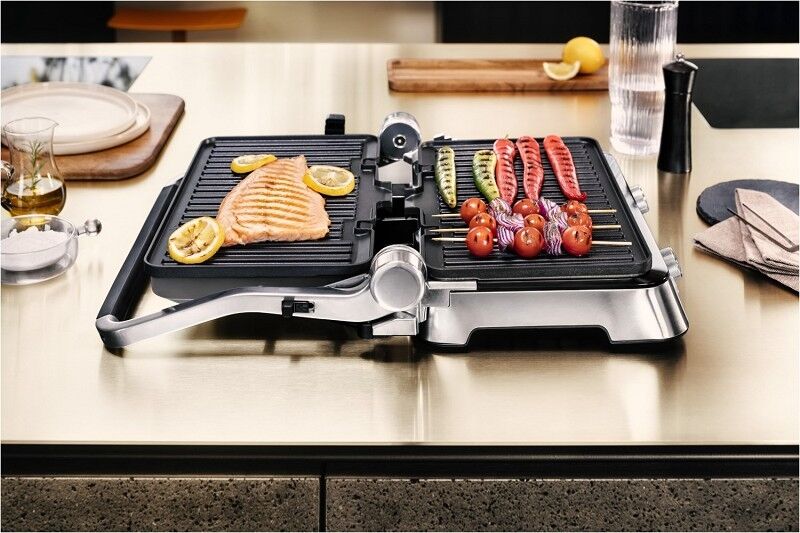 Maximale Vielseitigkeit dank Kontaktgrill- und Backofenposition bzw. ganz aufgeklappt als Tischgrill.