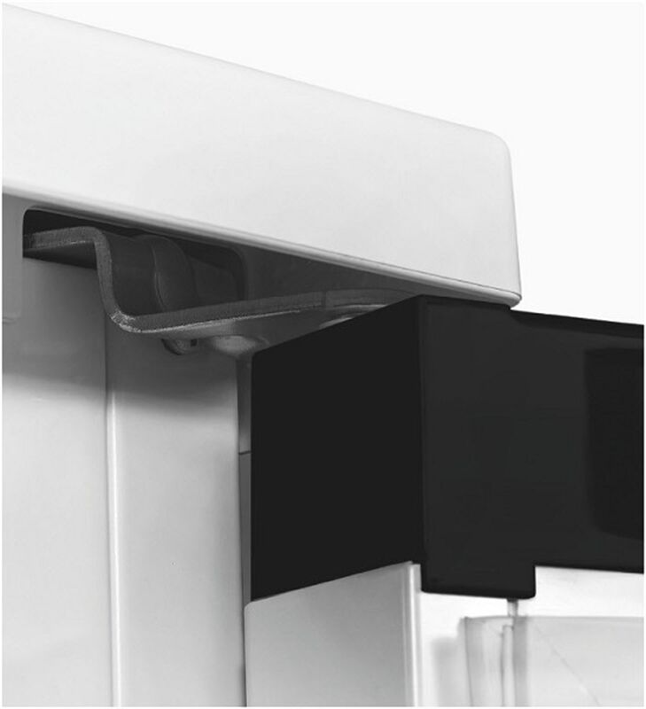Die Maße betragen 84,5 x 54,9 x 55,7 cm (HxBxT), mit einer Tiefe von 107,0 cm bei offener Tür. Neben modernen Features hat das Standgerät auch einen herausragend Look in Weiß.