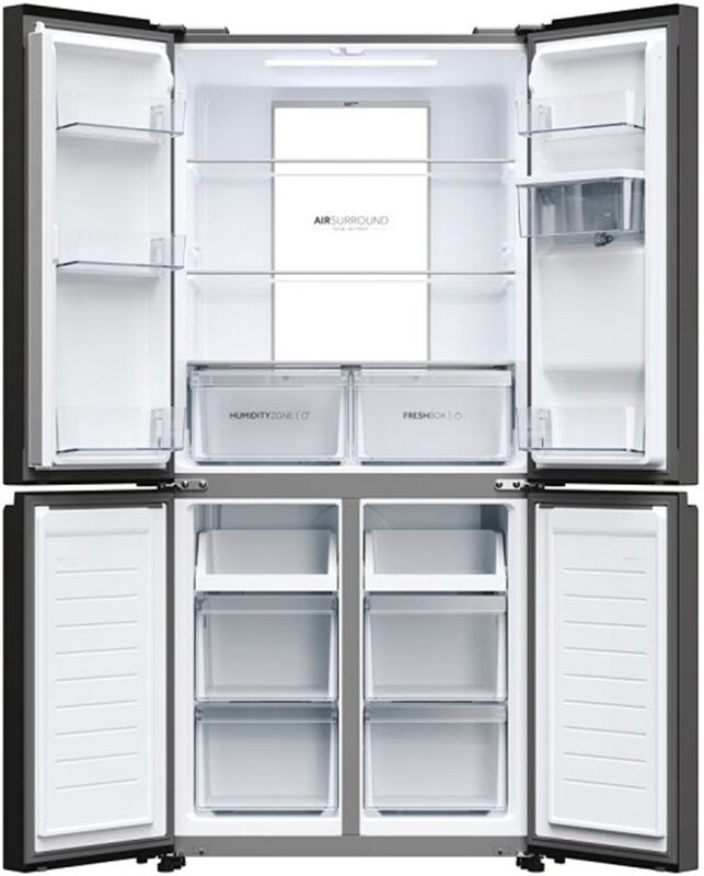 Verbrauchs-Eigenschaften - Angabe gem. EU-Verordnung 2019/2016 - Energieeffizienzklasse: Energieeffizienzklasse D - Energieeffizienzspektrum: Spektrum [A bis G] - Energieverbrauch in kWh/Jahr: 232 - 220-240V 50/60Hz Netzanschluss - Stromaufnahme (A): 1.5 Leistungseigenschaften - Klimaklasse: Klimaklasse SN/T - Gefrierteil oben/unten: Gefrierteil unten - Gefrierfach: 4-Sterne-Gefrierfach - Gefriervermögen in 24 Std. (kg): 10 - Lagerzeit bei Störung (Std.): 10 - gesamter Nutzinhalt (l): 463 - Nutzinhalt Kühlraum (l): 307 - Nutzinhalt Gefrierraum (l): 156 - Superkühlen-Schaltung - Super-Gefrier/Super-Frost-Funktion - No-Frost-Technik gegen Vereisung - elektronische Temperaturregelung - Geräusch-Schallleistung (dB): 35 - Geräuschemissionsklasse: Geräuschemissionsklasse B Bedienung - Tür offen-Warnsignal (Art): akustisches Tür offen-Warnsignal - Abtauverfahren (Kühlraum): Abtauautomatik im Kühl- und Gefrierteil - Urlaubsschaltung für Kühlraum Kühlraum-Ausstattung - Umluft-Kühlen - LED-Innenraum-Beleuchtung - Anzahl der Glas-Platten: 3 - höhenverstellbare Abstellflächen - Anzahl höhenverstellbarer Abstellflächen: 2 - Anzahl der Gemüseschalen: 2 - Feuchteregelung für Gemüsefach Gefrierteil-Ausstattung - Umluft - Anzahl Fächer/Schubladen, gesamt: 6 - Anzahl der Schubladen: 6 Kühlschranktür-Ausstattung - Anzahl der Türregale: 6 - Wasser-/Getränkespender Gehäuse-Eigenschaften - Breite (cm): 83.3 - Höhe (cm): 181.5 - Tiefe (cm): 65 - Leergewicht (kg): 85 - Anzahl der Türen: 4 - integrierte Griffmulde Verpackungsangaben - Breite mit Verpackung (cm): 89.2 - Höhe mit Verpackung (cm): 192 - Tiefe mit Verpackung (cm): 70.9 - Gewicht mit Verpackung (kg): 94