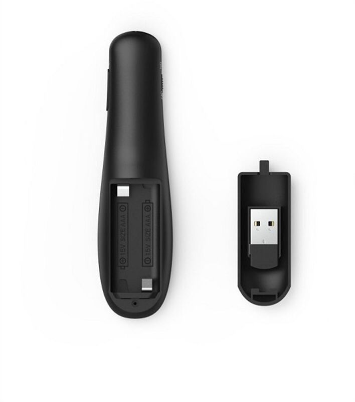• 2,4-GHz-RF-Presenter mit rotem Laserpointer zur professionellen Steuerung und Unterstützung bei Präsentationen via Beamer