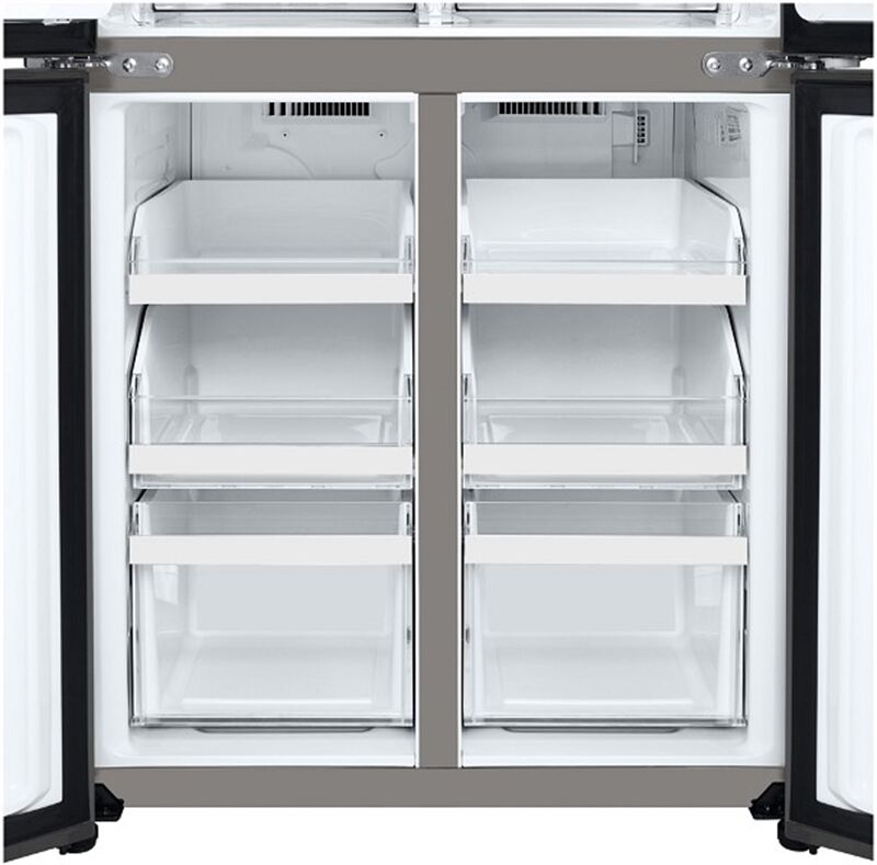 Verbrauchs-Eigenschaften - Angabe gem. EU-Verordnung 2019/2016 - Energieeffizienzklasse: Energieeffizienzklasse E - Energieeffizienzspektrum: Spektrum [A bis G] - Energieverbrauch in kWh/Jahr: 314 - Energieeffizienzindex: *: 100 - 220-240V 50/60Hz Netzanschluss - Absicherung (A): 16 Leistungseigenschaften - Anschlusswert (W): 2100 - Gefrierteil oben/unten: Gefrierteil unten - Gefrierfach: 4-Sterne-Gefrierfach - Gefriervermögen in 24 Std. (kg): 10 - Eismaschinen-Funktion: Eismasch. f. gestoß. Eis/-Würfel/-Wasser - Anzahl der Wassertanks: 1 - gesamter Nutzinhalt (l): 506 - Nutzinhalt Kühlraum (l): 286 - Nutzinhalt Gefrierraum (l): 220 - Superkühlen-Schaltung - Super-Gefrier/Super-Frost-Funktion - No-Frost-Technik gegen Vereisung - automatische Temperaturregelung - elektronische Temperaturregelung - Inverter-Technologie - optionale Smart Home Funktion - WLAN Ausstattung: WLAN integriert - Selbstdiagnose/Fehlerdiagnose - Geräusch-Schallleistung (dB): 40 - Geräuschemissionsklasse: Geräuschemissionsklasse C - Anzahl der Kompressoren: 1 Bedienung - Art der Temperaturanzeige: Temperatur-Digital-Anzeige - wählbare Kühlteil-Temperatur - wählbare Gefrierteil-Temperatur - Temperaturanstieg-Warnsignal (Art): akustisches Temperaturanstieg-Warnsignal - Abtauverfahren (Kühlraum): Abtauautomatik im Kühl- und Gefrierteil Kühlraum-Ausstattung - Umluft-Kühlen - LED-Innenraum-Beleuchtung - Anzahl der Sicherheitsglasplatten: 3 - Anzahl der Gemüseschalen: 2 Gefrierteil-Ausstattung - Umluft - Anzahl Fächer/Schubladen, gesamt: 6 - Anzahl der Schubladen: 6 - transparente Gefrier-Schubfächer Kühlschranktür-Ausstattung - Anzahl der Türregale: 5 Ausstattung - Apps ladbar Gehäuse-Eigenschaften - Breite (cm): 83.5 - Höhe (cm): 178.7 - Tiefe (cm): 73 - Tiefe bei geöffneter Tür (cm): 106.5 - Leergewicht (kg): 125 - Länge der Anschlussleitung (cm): 150 - Anzahl der Türen: 4 - Stellfüße vorn - höhenverstellbare Gerätefüße - Gerät mit Laufrollen - integrierte Griffmulde Verpackungsangaben - Breite mit Verpackung (cm): 88.5 - Höhe mit Verpackung (cm): 188.9 - Tiefe mit Verpackung (cm): 76.8 - Gewicht mit Verpackung (kg): 141 Farben - Gehäuse-Farben: silber
