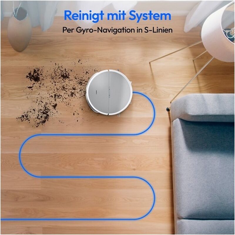 • Reinigt mit System: Der Roboter fährt den Boden per Gyro-Navigation systematisch in S-Linien ab und sorgt somit für gründliche Ergebnisse