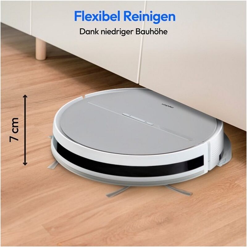 • Flexibel: Durch seine Bauhöhe von nur 70 Millimetern reinigt der Roboter zuver lässig auch unter Möbeln und an schwer erreichbaren Stellen