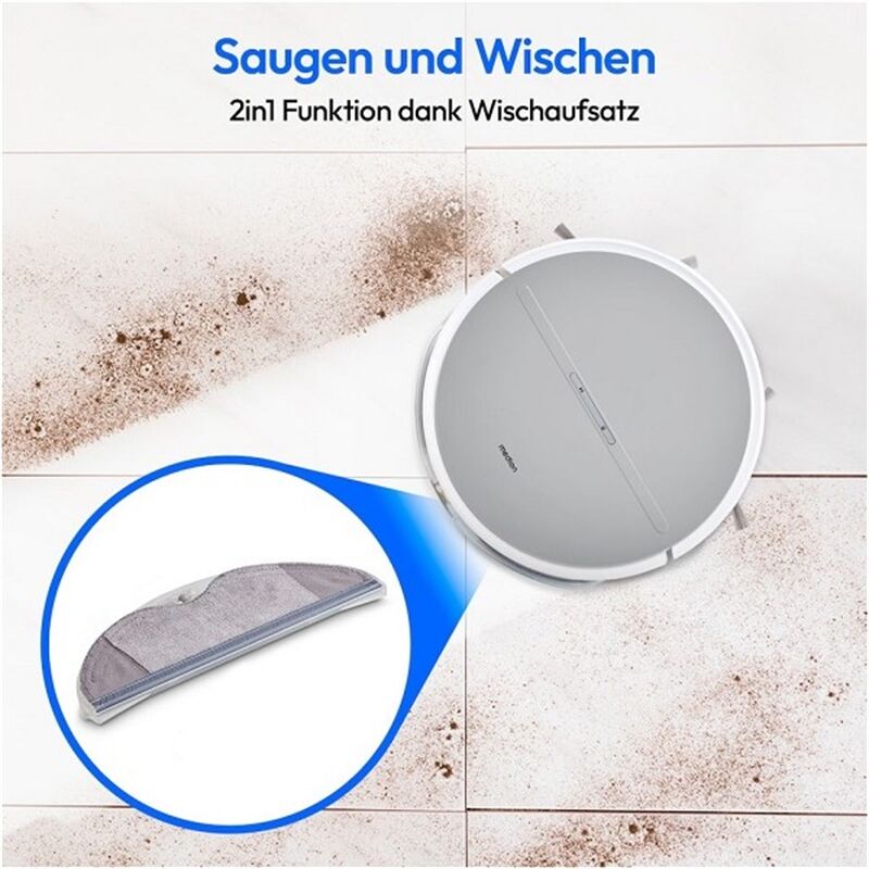 Saugen und Wischen – der MEDION Saugroboter mit Wischfunktion kann beides. Durch die aufsteckbare Wischplatte mit separatem Wassertank kann der Roboter sowohl Saugen als auch Wischen.