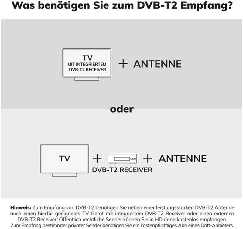 • Starke Empfangstechnik für digitales DVB-T2 Antennenfernsehen,