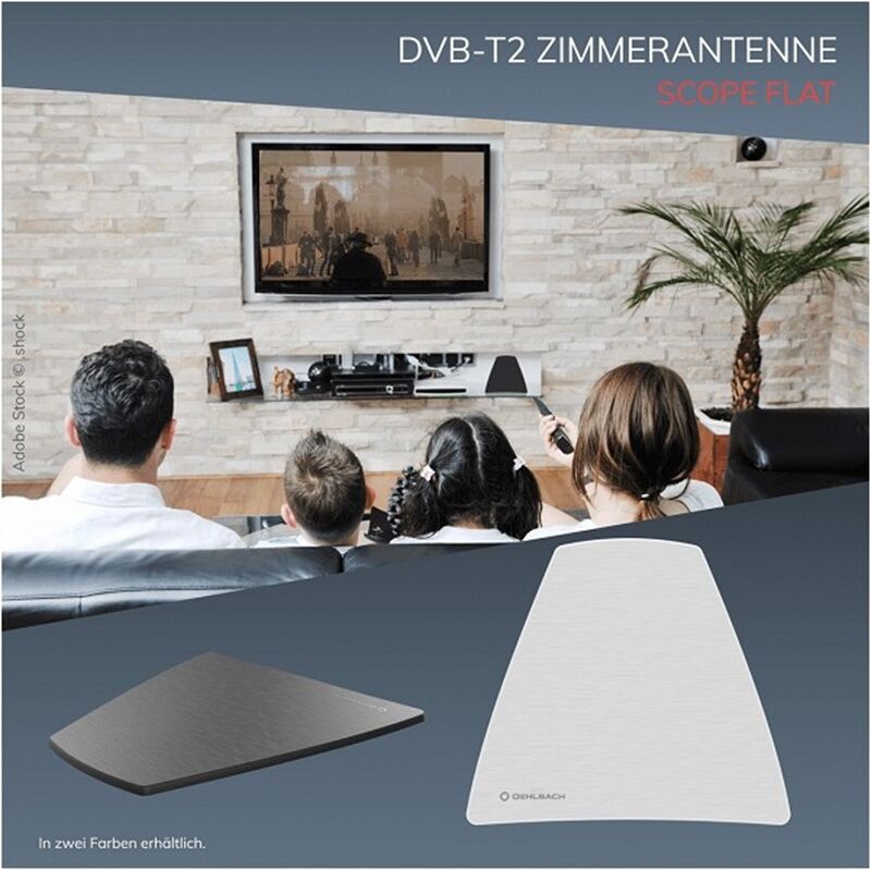 Hervorragender Empfang des digitalen Antennenfernsehens DVB-T2 braucht immer eine passende Antenne: eine wie die Oehlbach Scope Flat. In dieser DVB-T2 Zimmerantenne sorgt neu entwickelte, besonders rauscharme Empfangstechnik für Bild- und Tonqualität, die sich sehen und hören lassen kann.