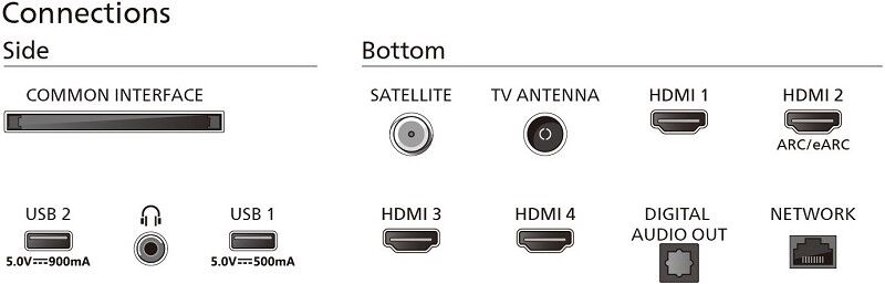 • DVB-T2/-C/-S2 Triple Tuner, 4x HDMI, HDMI 2.1, 2x USB, CI+, Digitaler Audio-Ausgang (optisch), Ethernet-LAN, WLAN 802.11ac, 2 x 2 Dualband & Bluetooth 5.2 integriert
