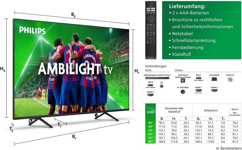 Artikeldetails für Philips 85PUS8309/12 (Schwarz) LCD, 85, 215, Ultra HD