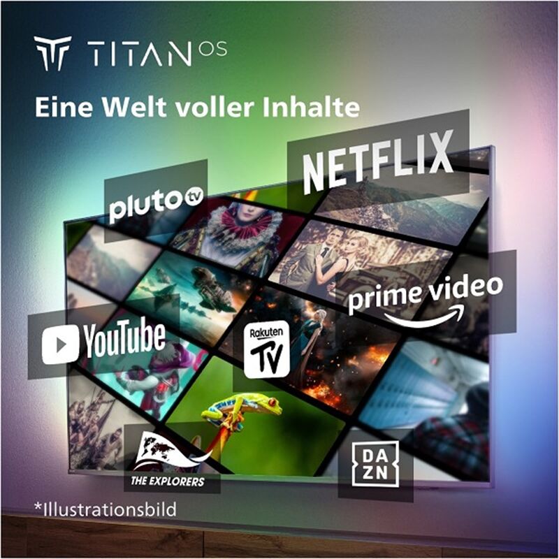 Mit der TITAN OS Smart TV-Plattform finden Sie Ihre Lieblingsinhalte im Nu. Sie schauen gerne eine bestimmte Serie? Dann können Sie sie jetzt direkt vom Startbildschirm aus weiterschauen. Wenn Sie auf der Suche nach etwas Neuem sind, können Sie Kategorien wie Action oder Drama durchsuchen und sich Vorschläge von den gängigsten Streaming-Diensten ansehen – alles an einem Ort.