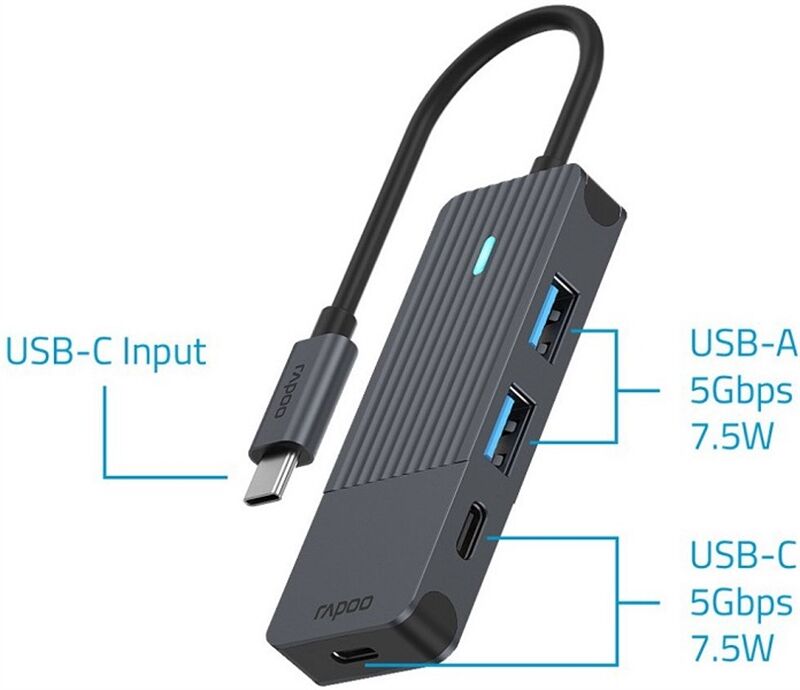 Artikeldetails für rapoo USB-C Hub (Grau)