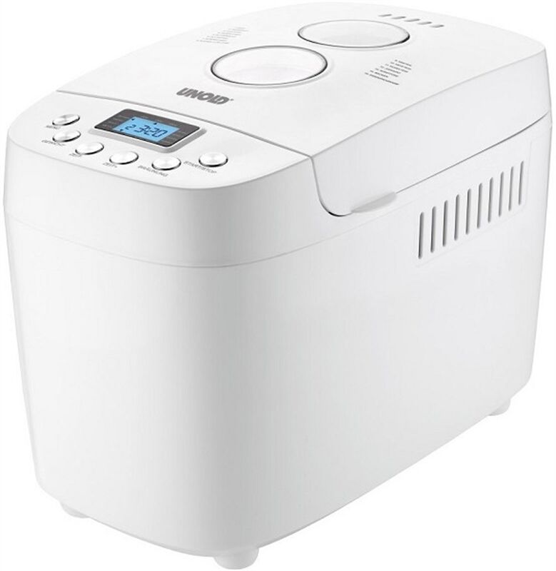 • 15 gespeicherte Programme, davon 1 für glutenfreies Brot, 1 Programm für Marmelade/Konfitüre, 1 Programm zum Backen von Kuchen, 1 Nudelteigprogramm, Programm zur Joghurtherstellung, 1 Eigenprogramm